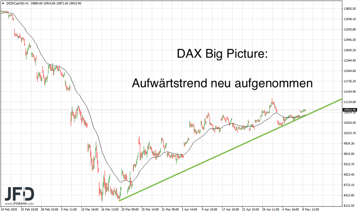 So konnte der DAX auf Basis des mittelfristigen Chartbildes einen neuen Aufwärtstrend bilden und die Tendenz ab Mitte März wieder aufnehmen:
