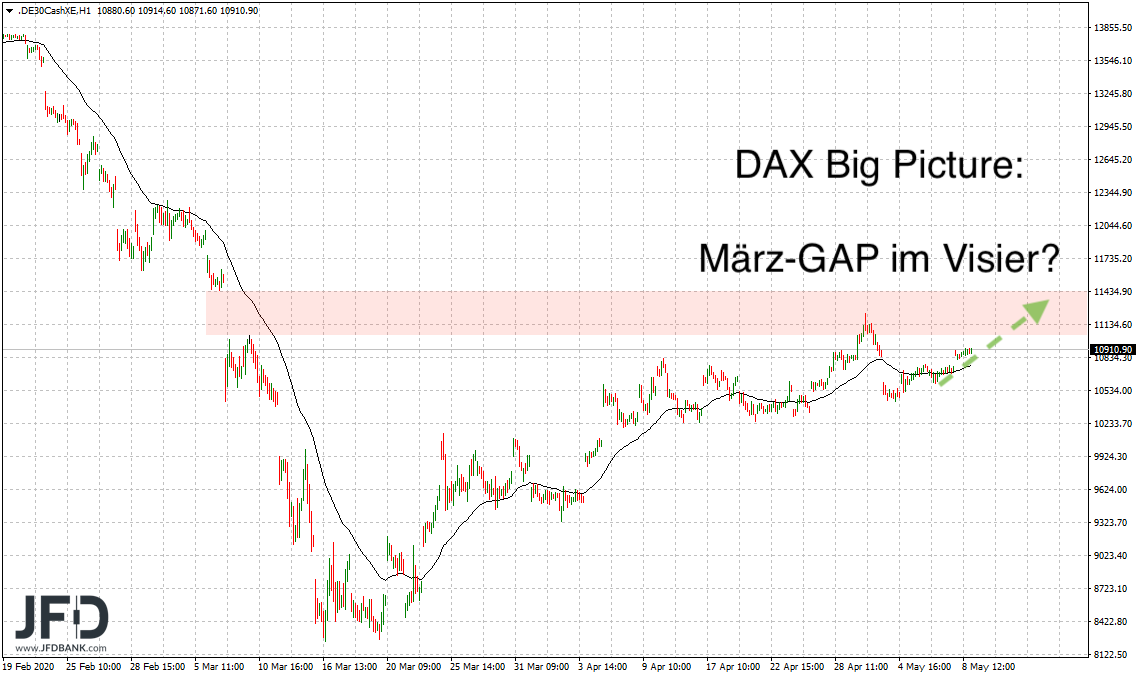 Hierbei lockt im ersten Schritt die runde 11.000erMarke und darüber dann das größere GAP zu Anfang März, was wir bereits einmal beinahe abgearbeitet hatten: