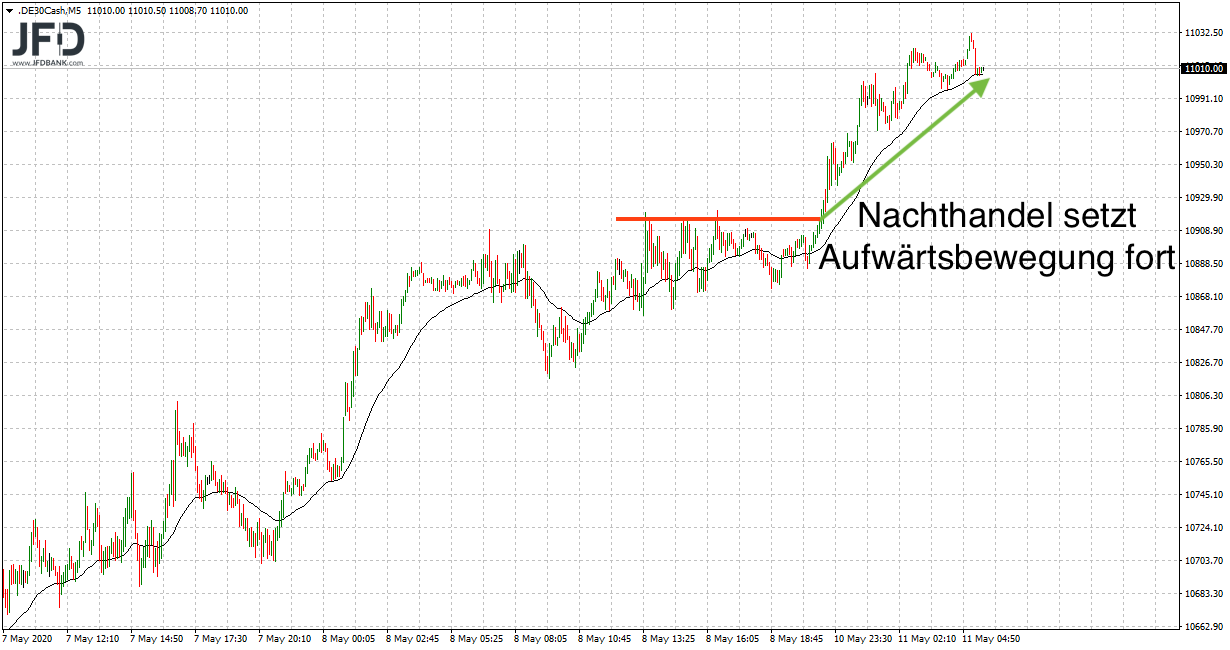 Schauen wir auf die Kurse aus der Vorbörse, konnte man die 11.000 bereits sehen. Eine Marke, die für Anleger sicherlich Symbolcharakter hat und erhöhte Aufmerksamkeit verursacht: