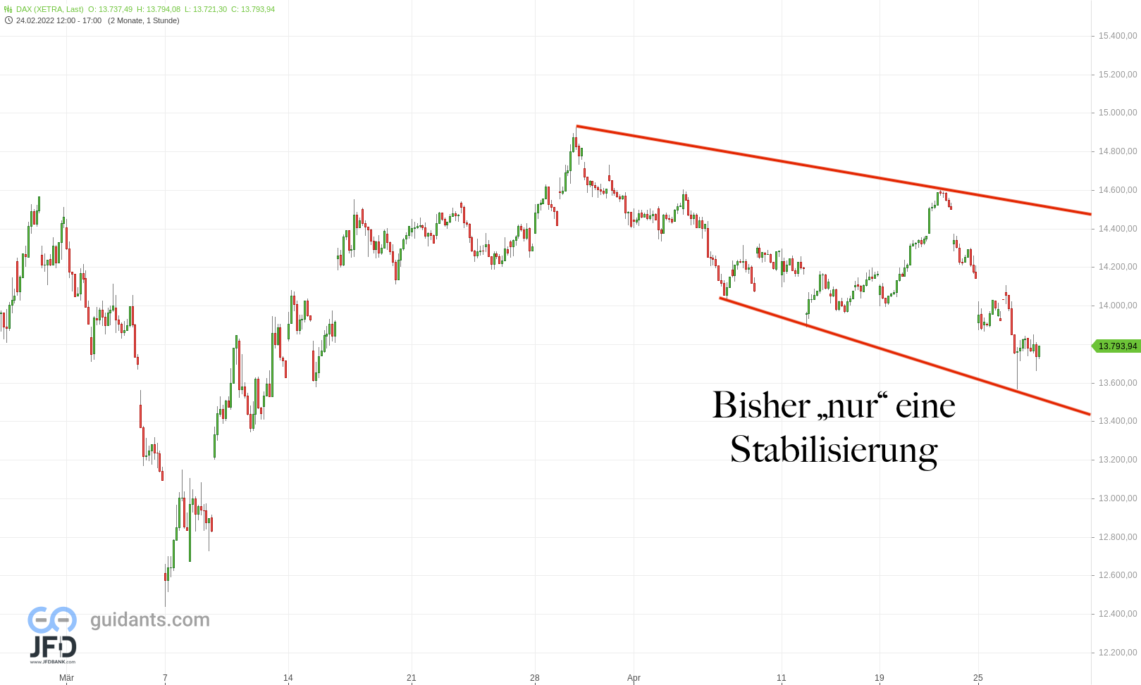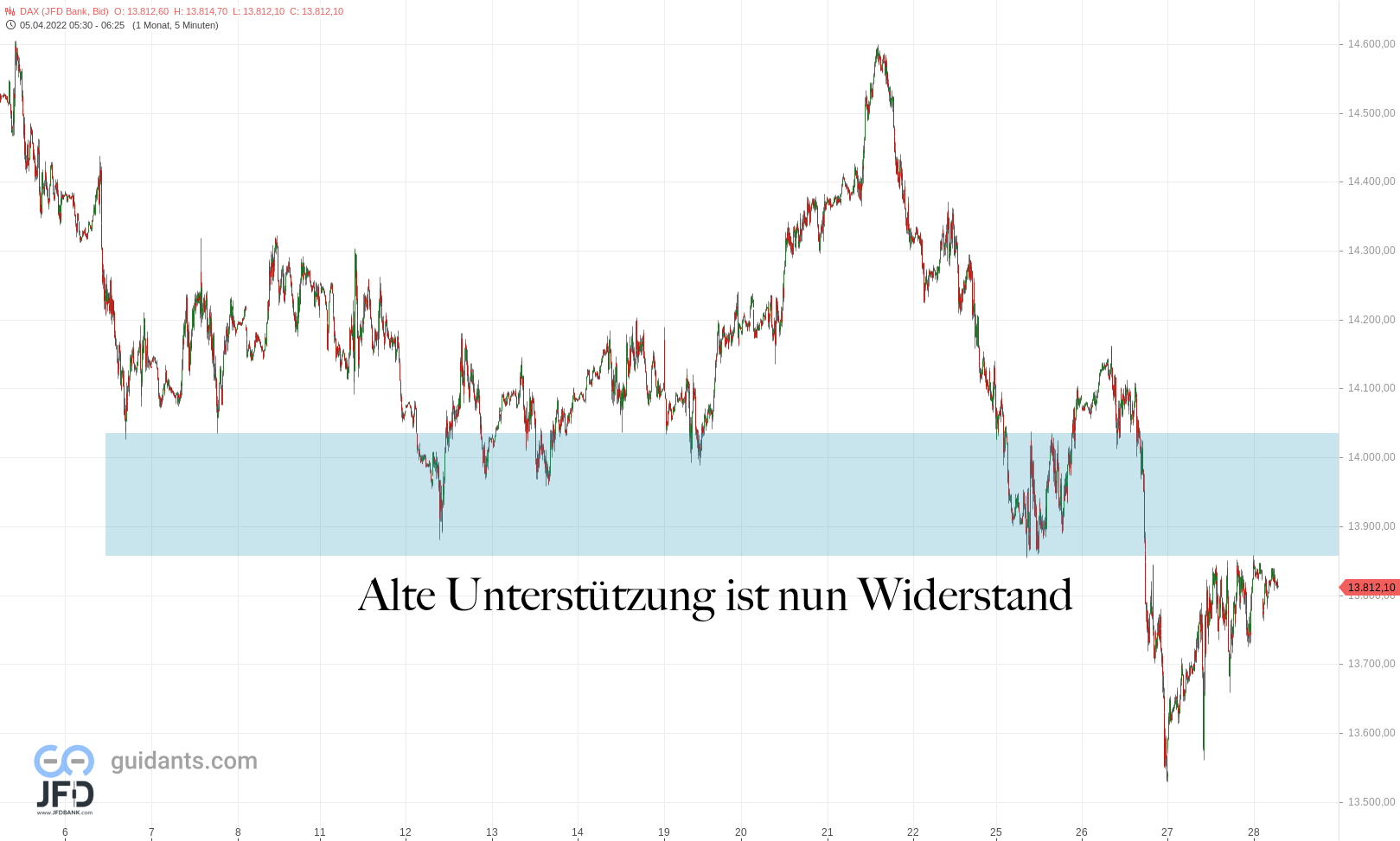 Es brauchte nur drei Handelstage, um im DAX ein Minus von 1.000 Punkten zu generieren. Damit ist der Kalendermonat deutlich negativ. Neben der Angst vor weiteren Lieferengpässen schwang dabei auch der Gas-Stopp Russlands mit und erneut die Angst vor US-Quartalszahlen.