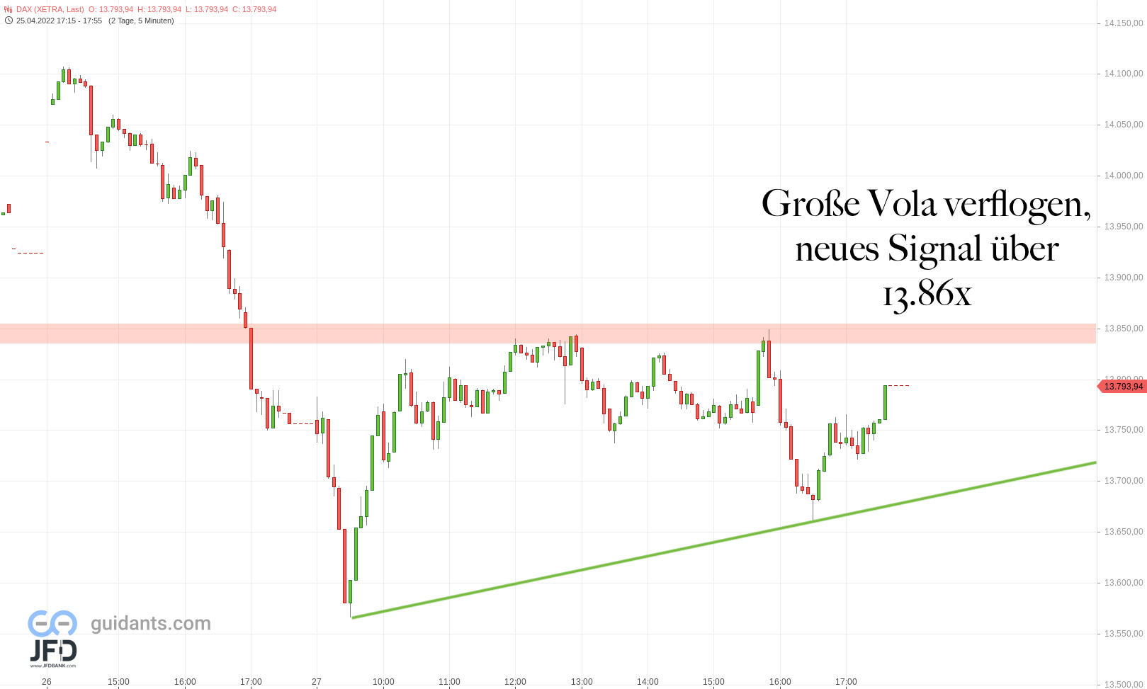Mit dem Rücklauf der Vola und der Stabilisierung nach neuen Monatstiefs kehrt wieder etwas Ruhe in den DAX ein: