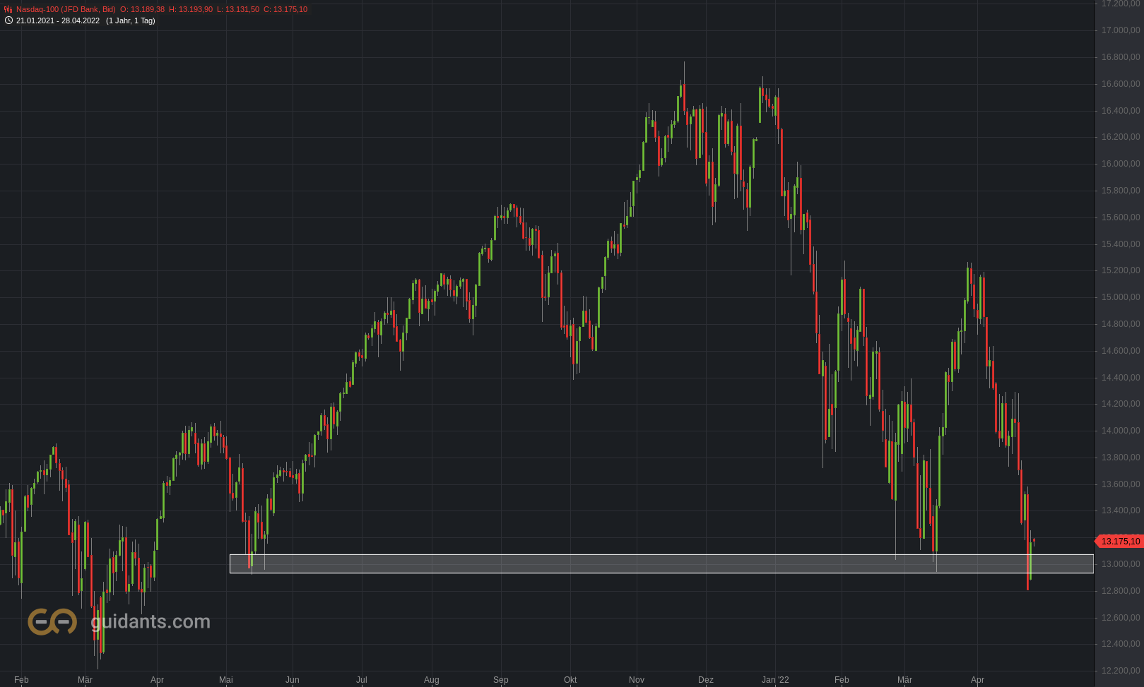 Apropos Druck - der Nasdaq schaffte es damit, sich an der 13.000 zu stabilisieren und könnte diese Unterstützung nun heute ausbauen: