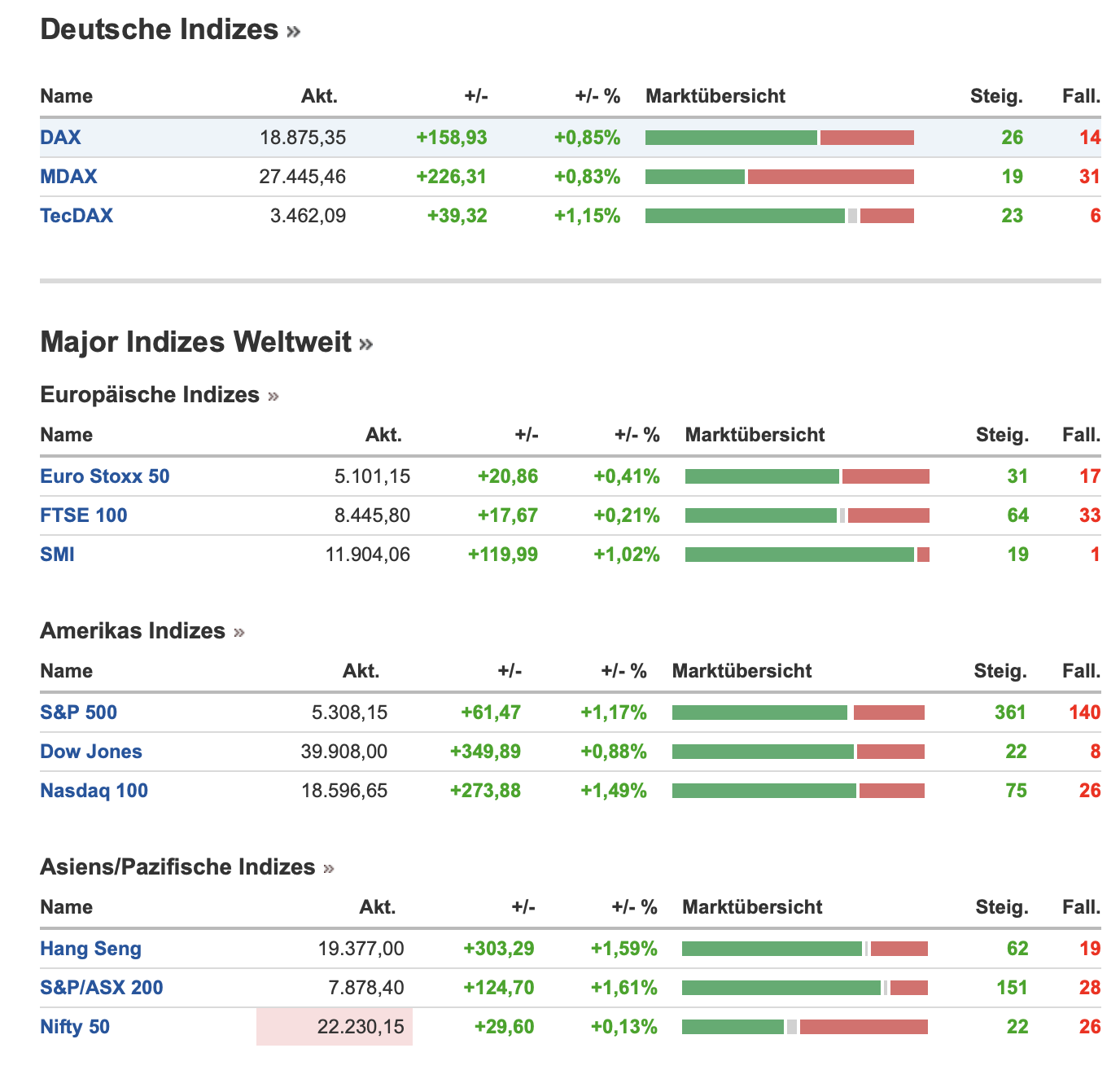 Als Zusammenfassung aller Indizes inklusive Asien ist diese Übersicht am Morgen hier verankert: