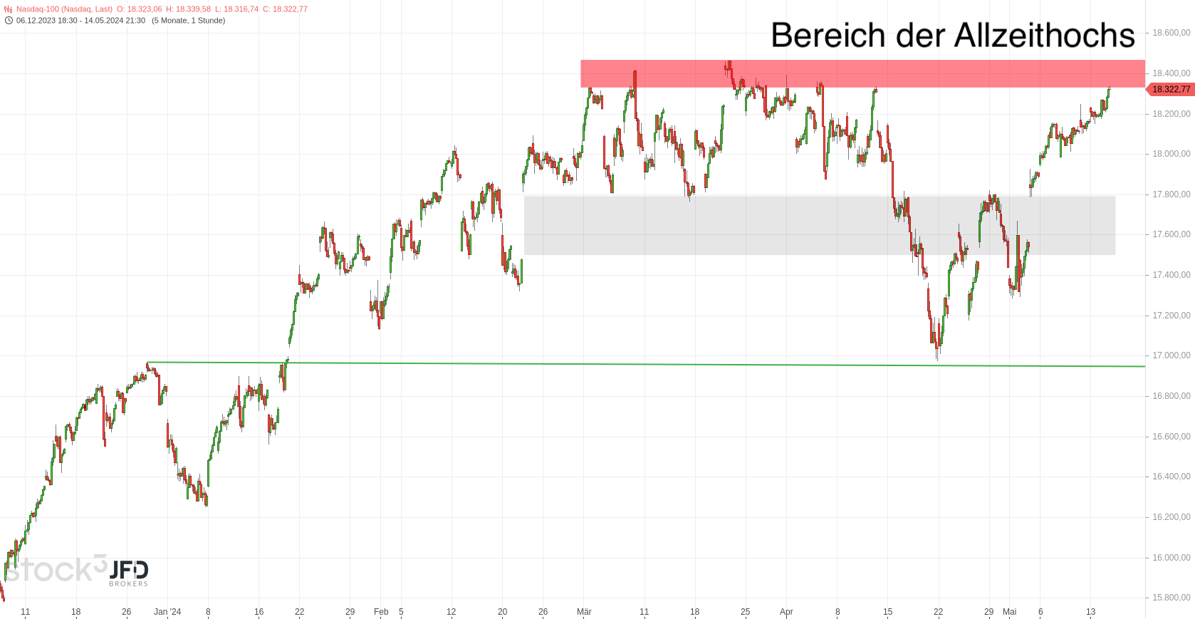 Mit diesem Schwung konnte der Nasdaq tiefer in die Bereiche der Allzeithochs eindringen (Rückblick):