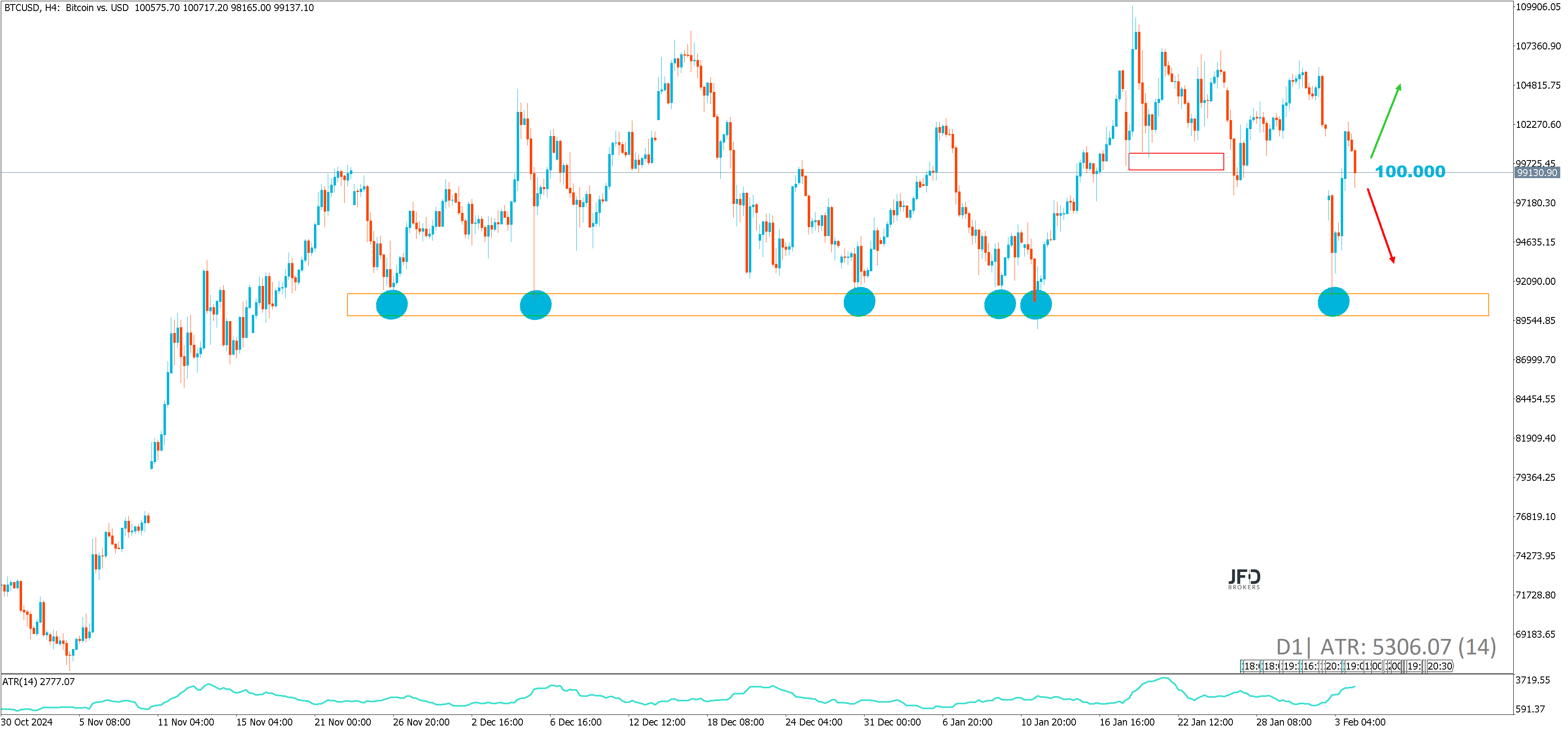 - Sollte die Spekulation um Krypto-Investitionen weiter an Fahrt gewinnen, könnte die $100.000-Marke nicht nur überwunden, sondern sogar zur Unterstützung werden.