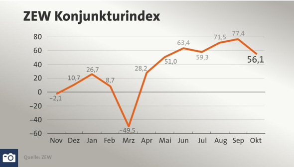 Benannter Index lag für den Oktober unter den Erwartungen und zeigt, sicherlich auch durch die steigenden Fallzahlen beim Thema Covid19 bedingt, eine schwächere Konjunktureinschätzung an: