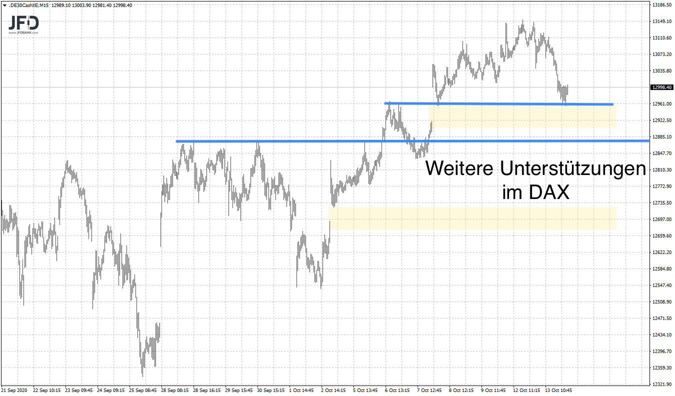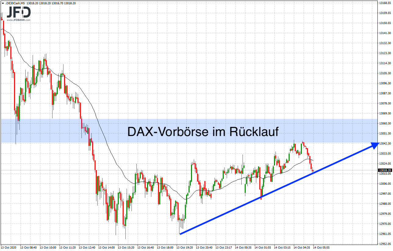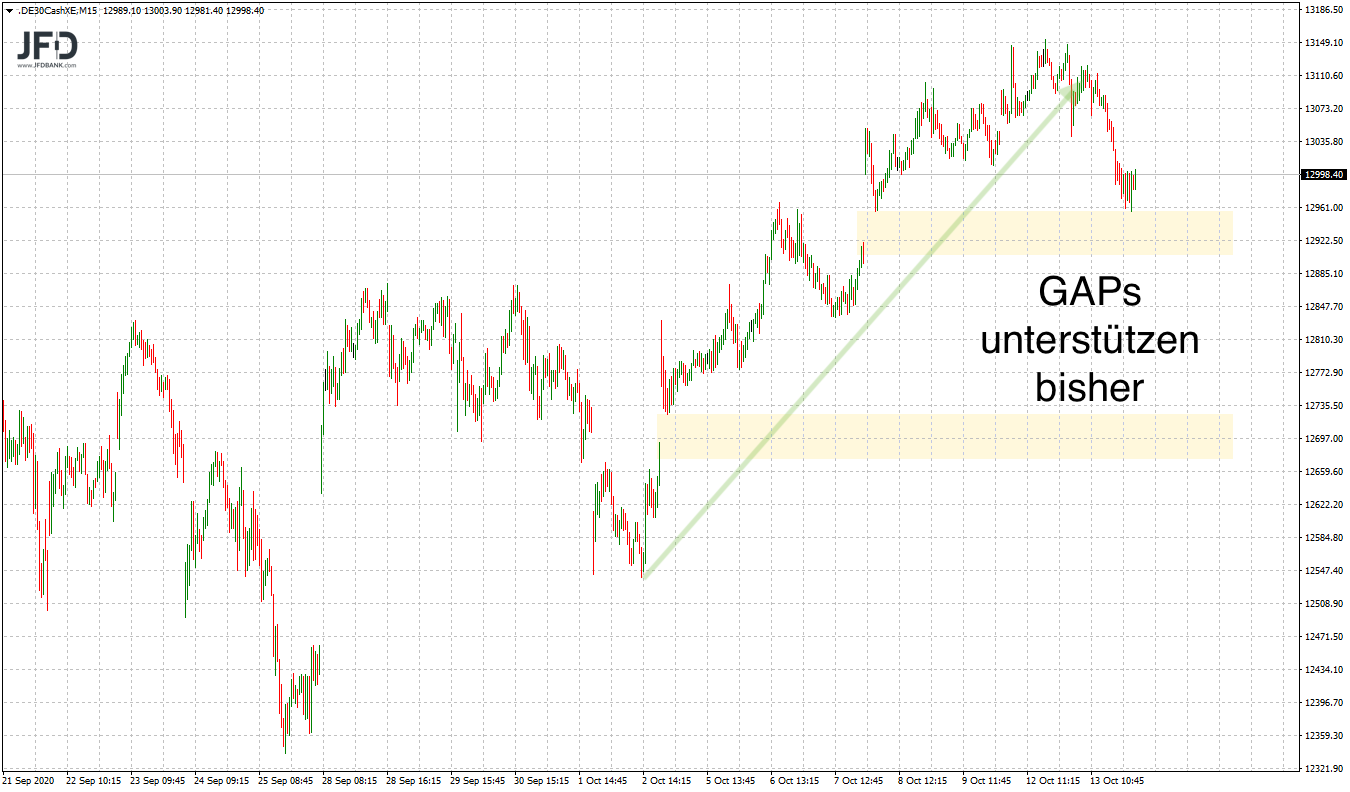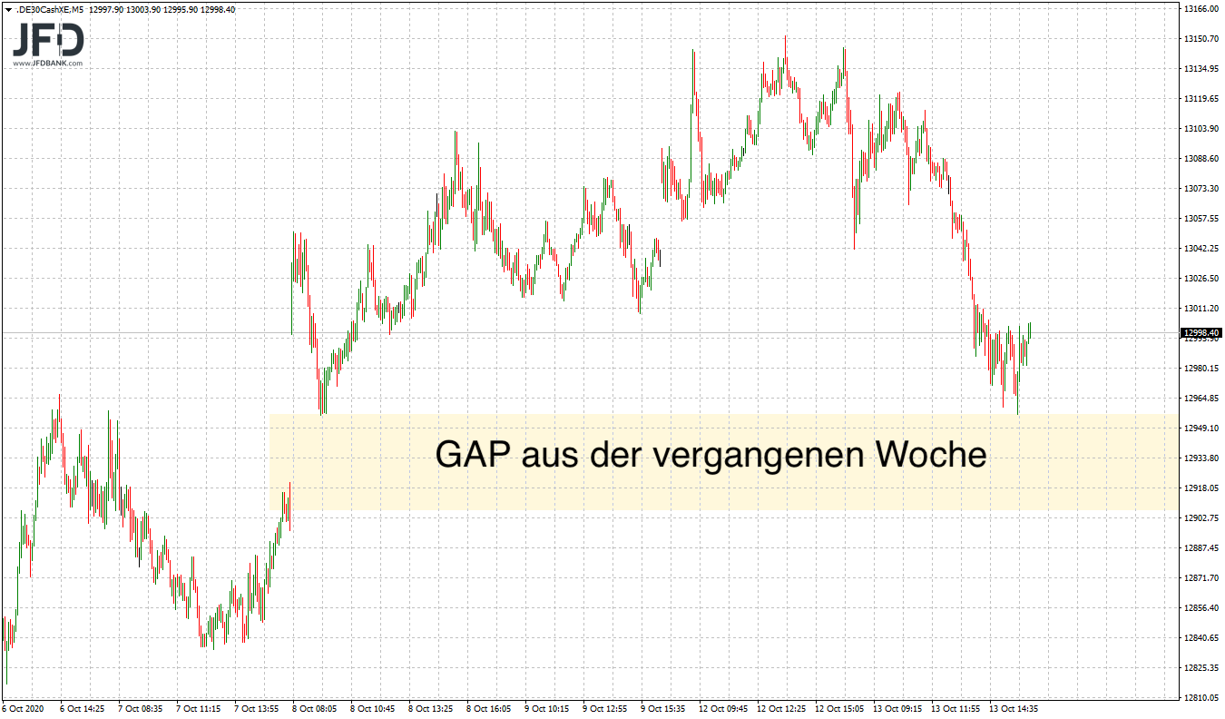 Für heute steht daher die 13.000 als eine solche Marke ebenso wie die skizzierte GAP-Kante für einen solchen Trade auf der Agenda. Wahrscheinlich ist hierbei erst einmal eine Erholung sehen, die dann im ersten Schritt technisch an die 13.060 führen kann: