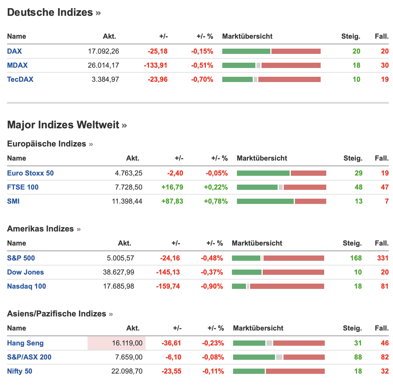 Die internationalen Schlusskurse mit den Daten vom Freitag sind hier verankert:
