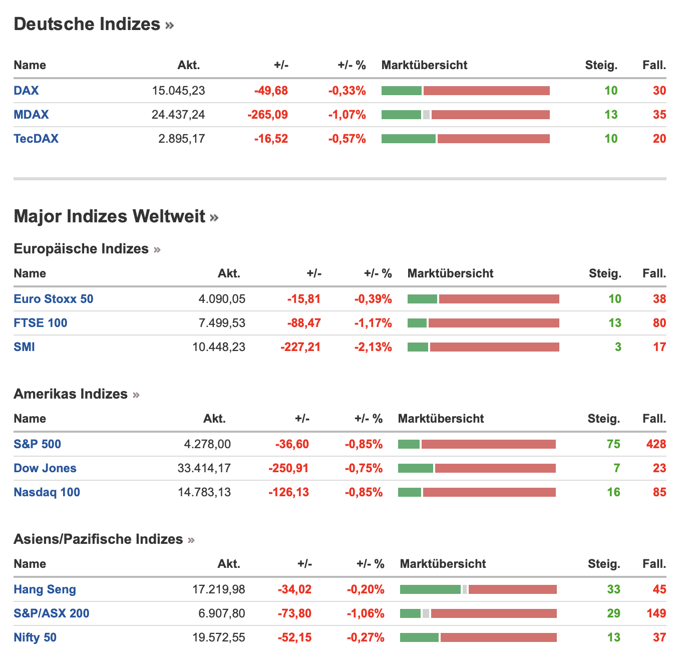 Hier siehst Du alle Schlusskurs im Vergleich: