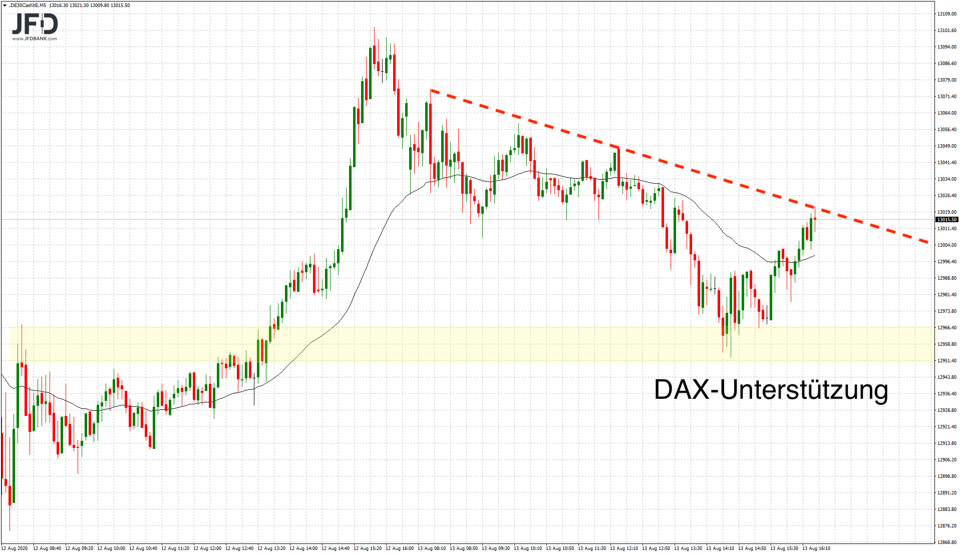 • größerer Widerstand um 13.050, darüber Kursziel 13.075 und 13.101