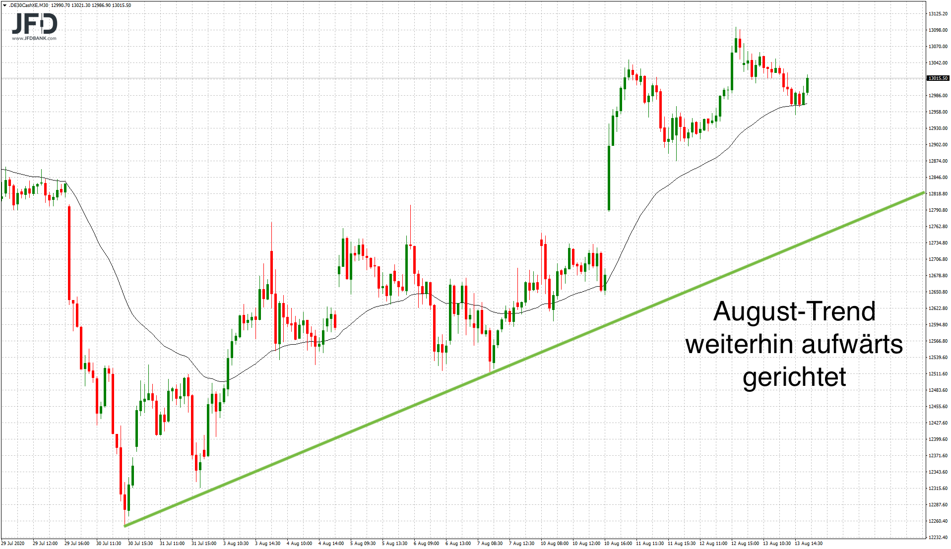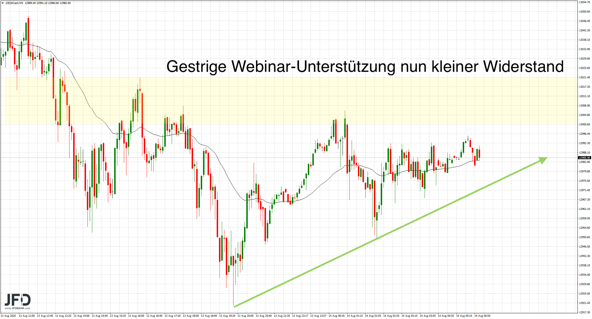 Aus der Vorbörse heraus gibt es noch keine Anzeichen für große Volatilität. Wir notieren unter 13.000 und unter dem Bereich bei 13.020, an dem gestern Vormittag eine Unterstützung erfolgte: