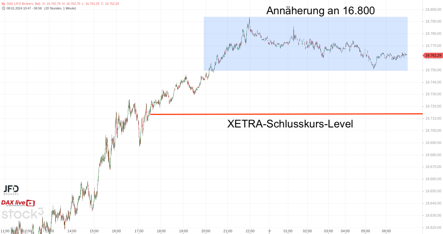 Der Nikkei notiert zum Morgen sogar auf dem höchsten Stand seit 33 Jahren. Entsprechend euphorisch gestaltet sich die Vorbörse und bringt die 16.800 wieder ins Visier der Analysen: