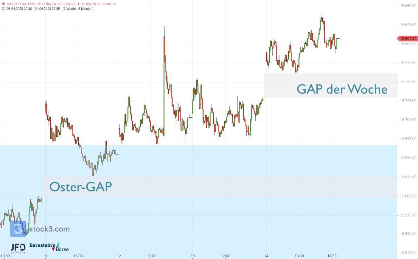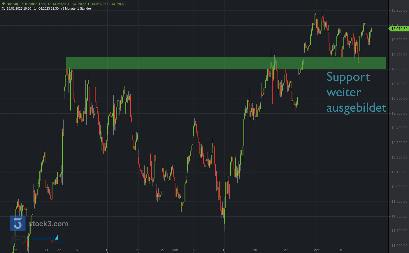 Etwas stärker war zunächst der Nasdaq, der dann aber zum Wochenausklang wieder seine Unterstützungszone testete. Sie entstand direkt zum Monatswechsel in den April hinein und festigte sich nach den US-Arbeitsmarktdaten zunehmend: