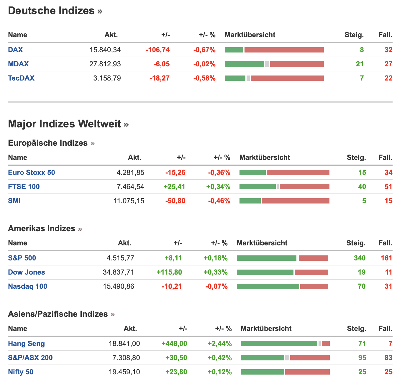 Alle Schlusskurse der Indizes sind hier abgebildet: