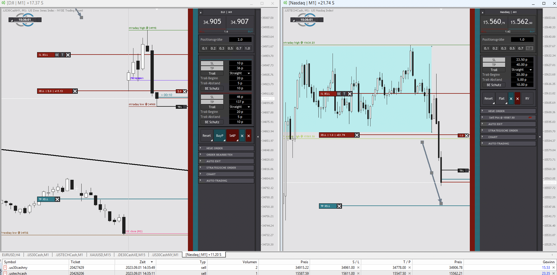 Die Wall Street baute ihre ersten Gewinne vor alle, im Nasdaq sehr zügig wieder zurück. Ein Short-Trade zur Eröffnung lief sehr schnell in den Gewinn: