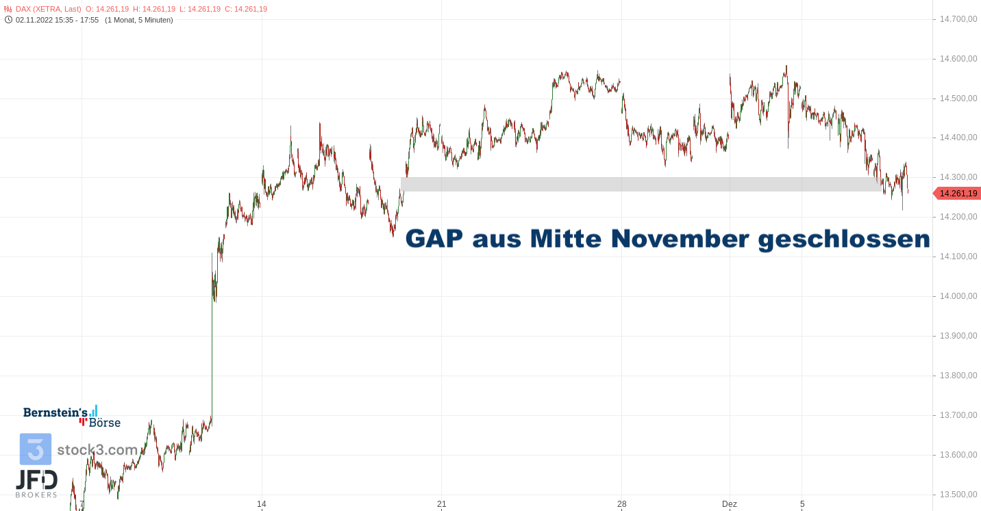 Genau dort war noch das Gap aus Mitte November verzeichnet, was im nächsten Anlauf dann komplett geschlossen werden konnte: