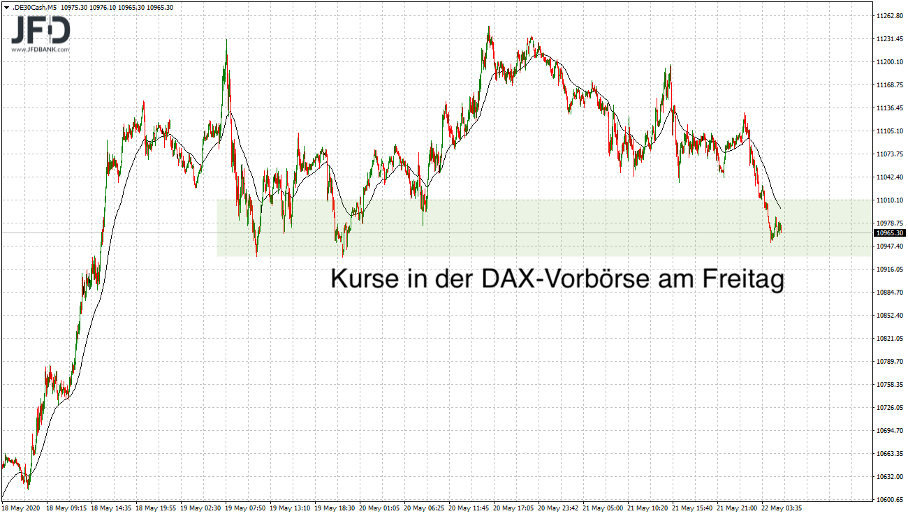 Aus den ersten Notierungen der Vorbörse ist bereits eine schwächere Tendenz für den Wochenausklang zu erahnen. Wir sehen Kurse unter 11.000 Punkten und damit direkt in der Unterstützungszone: