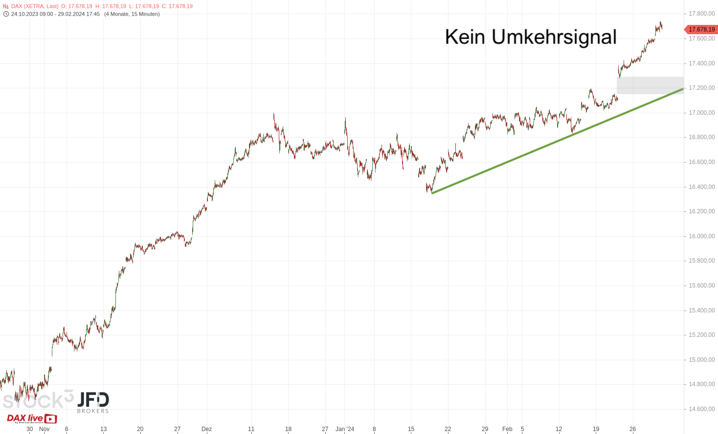 JFD Brokers bietet ausschließlich beratungsfreie Dienstleistungen an. Der Inhalt dieser Analyse enthält keine Anlageberatung bzw. Anlageempfehlung (und darf auch nicht als solche verstanden werden) und stellt keinesfalls eine Aufforderung zum Erwerb von jeglichen Finanzinstrumenten oder -produkten dar. JFD Brokers haftet nicht für Schäden, welche auf einzelne Kommentare und Aussagen auf Analysen von der JFD Brokers zurückzuführen wären / sind und übernimmt keine Gewähr in Bezug auf Vollständigkeit und Richtigkeit des dargestellten Inhaltes. Somit trägt der Anleger ausschließlich alleinverantwortlich das Risiko für seine Anlageentscheidungen.