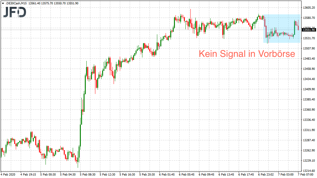 Vorbörslich lässt sich kein weiteres Signal ablesen, da wir ziemlich mittig im gestrigen Kursbereich notieren und mit 13.555 Punkten keinen Ausreißer oder gar ein GAP zu erwarten haben. Dennoch der Blick auf den Endloskontrakt an dieser Stelle: