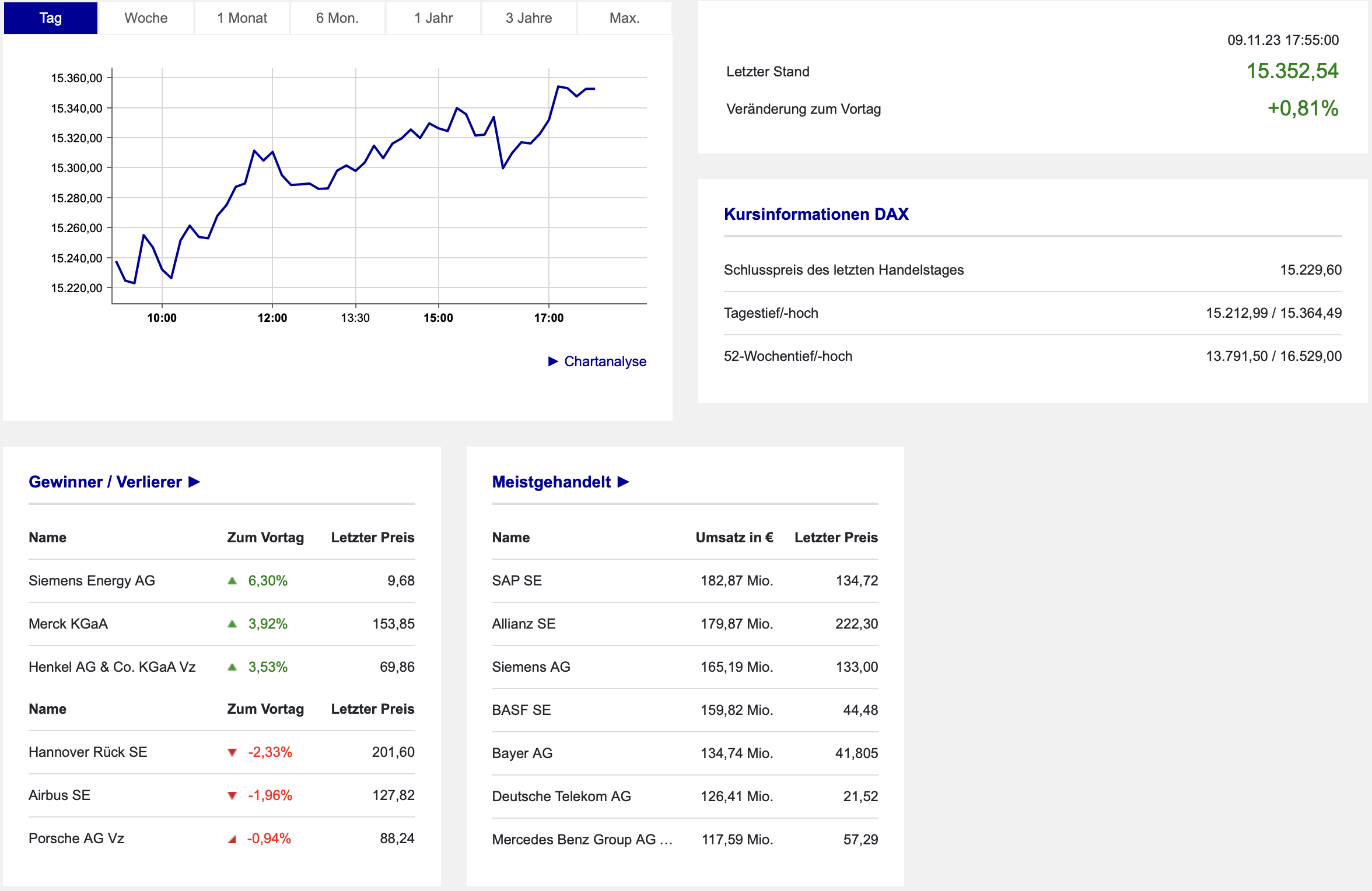 Dabei gelang es auch, das Plus bis zum XETRA-Schluss zu halten und fast am Tageshoch aus dem Handel zu gehen. So skizzierten sich die Daten von der Börse Frankfurt im Detail:
