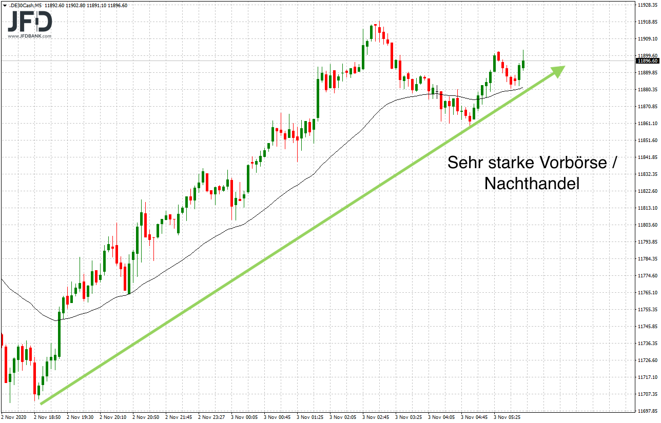 Aus der Vorbörse heraus kann man dies annehmen, da hier im Zuge weiter positiver US-Futures bereits die 11.900 angetestet wurde:
