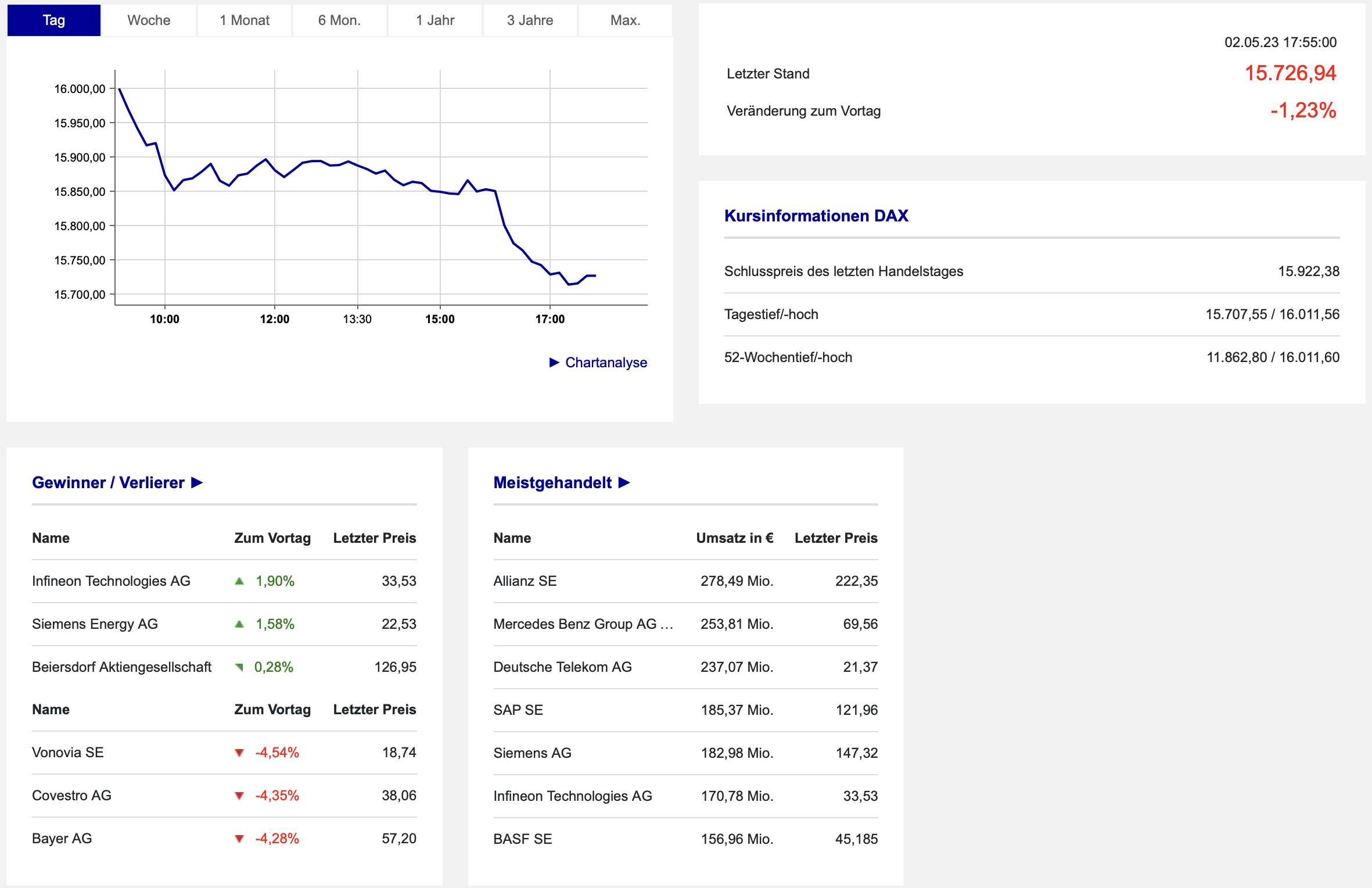 Termine an der Börse für den 03.05.2023