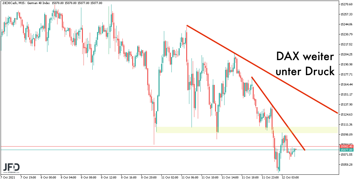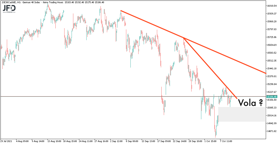 Durch den seitwärts gerichteten Handelstag hat sich an der großen Situation im DAX nichts geändert. Wir notieren weiterhin im Stundenchart unter einem großen Abwärtstrend und können diese Trendlinie sogar noch einmal um einen kurzfristigeren Trendverlauf optisch erweitern: