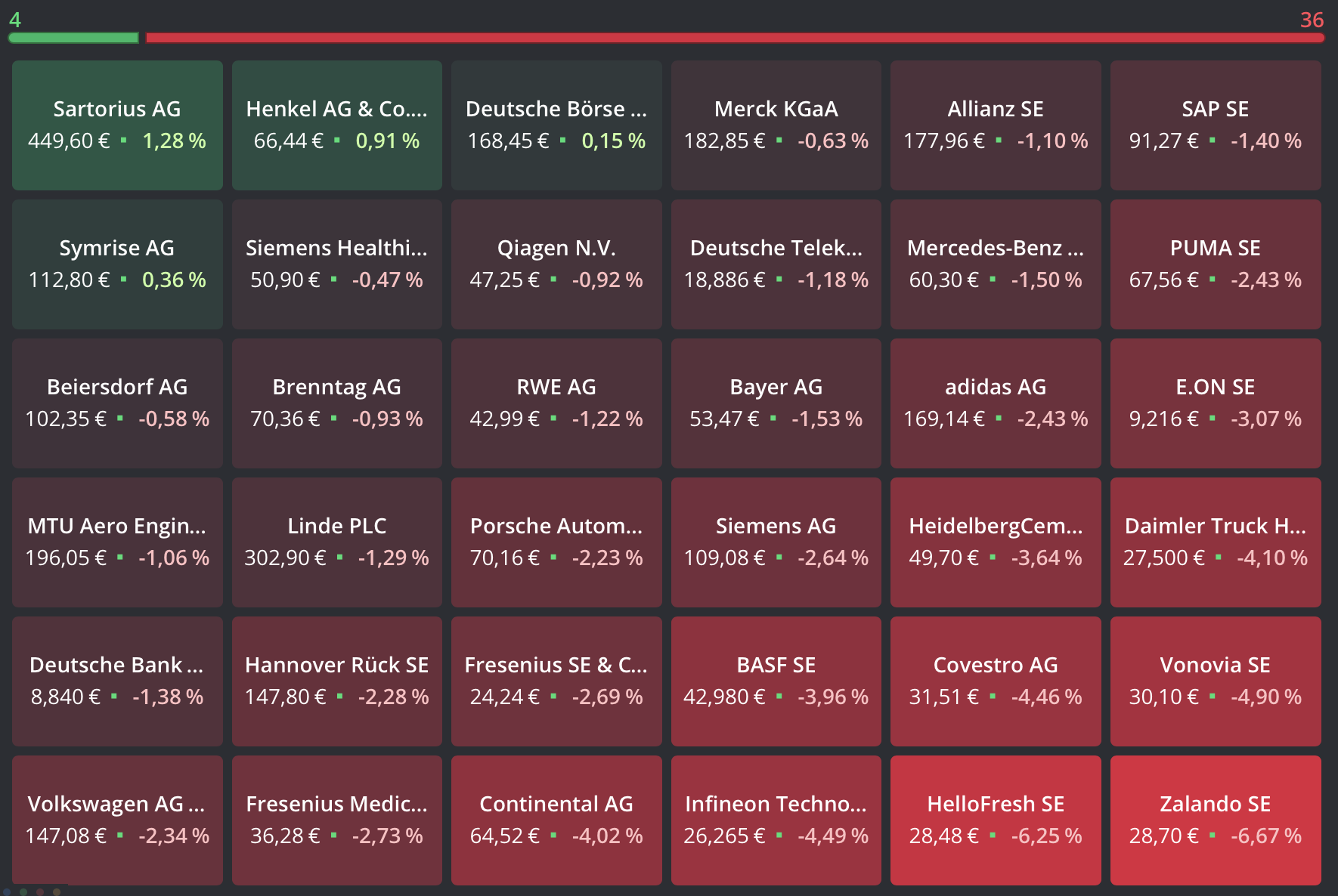 Das Minus zog sich durch alle Branchen, die sensitiven Werte wie Zalando oder HelloFresh standen damit wieder am Ende des Rankings: