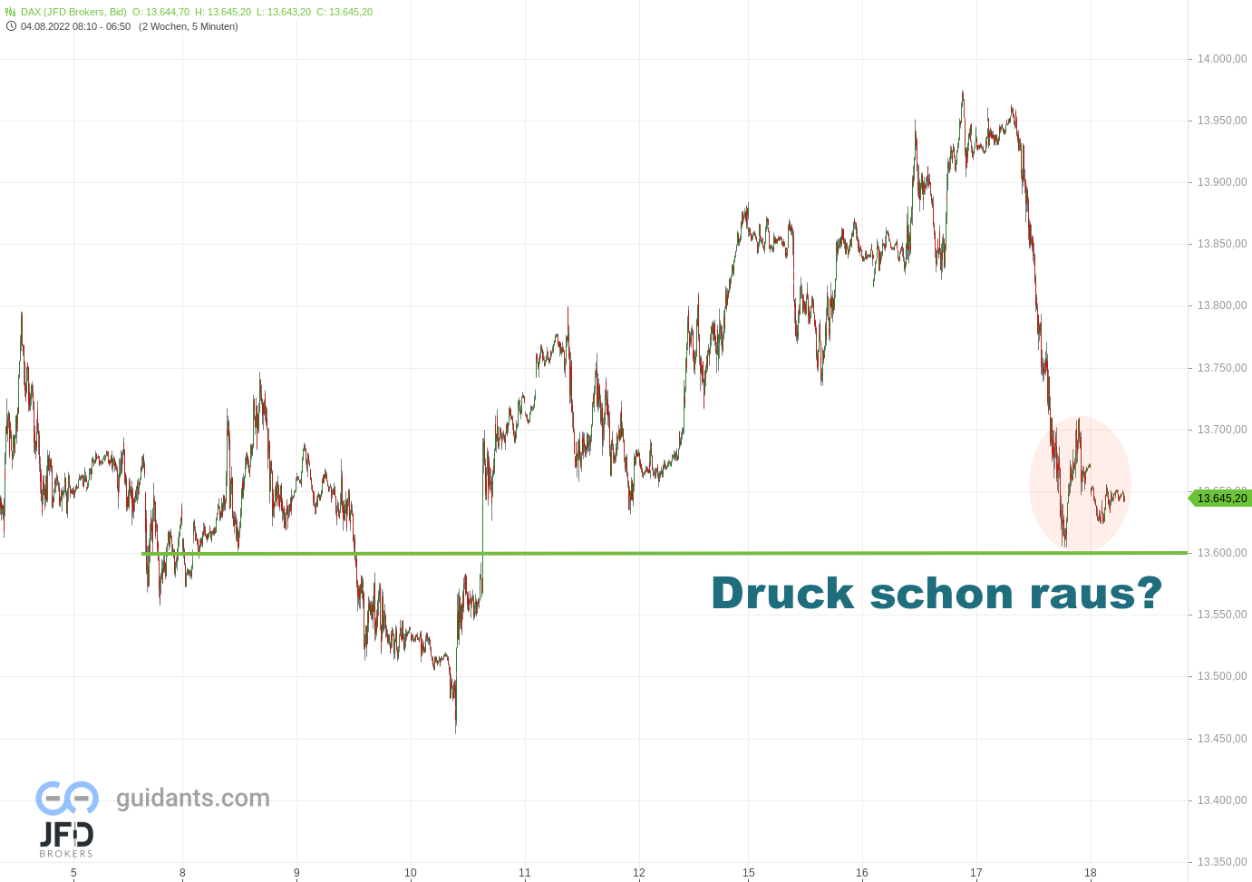 Entspannung und ein Reversal könnte erst mit Überschreitung der 13.700 erfolgen - genau dazwischen eröffnen wir und haben damit einen spannenden Tag vor uns.