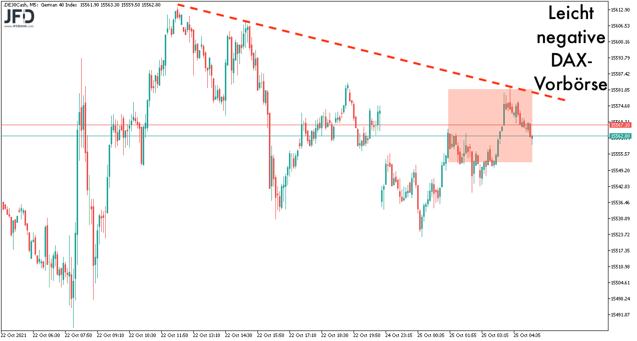 Von den letzten beiden Handelstagen verbinde ich ebenfalls die Tiefs und komme direkt beim Schlusskurs auf einen Entscheidungspunkt. Von dort aus sind die Vorwochenhochs (vom Freitag) respektive die Zone über 15.580 nun spannend und könnten für die übergeordnete Zeiteinheit eine Entscheidung hervorbringen. Auffangzone ist erst einmal wieder der 15.470 bis 15.500er-Bereich: