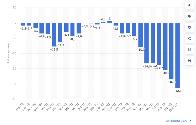 Es gab durchaus "Gründe" neben der Charttechnik, so zum Beispiel das Leck an der Nordsee-Pipeline Nordstream oder das erneut schlechte Verbraucherklima in Deutschland. Es wurde direkt um 8.00 Uhr veröffentlicht und notierte auf dem tiefsten Stand seiner Geschichte. Wie stark der Einbruch der Konsumneigung in den letzten Monaten bereits war, siehst Du hier: