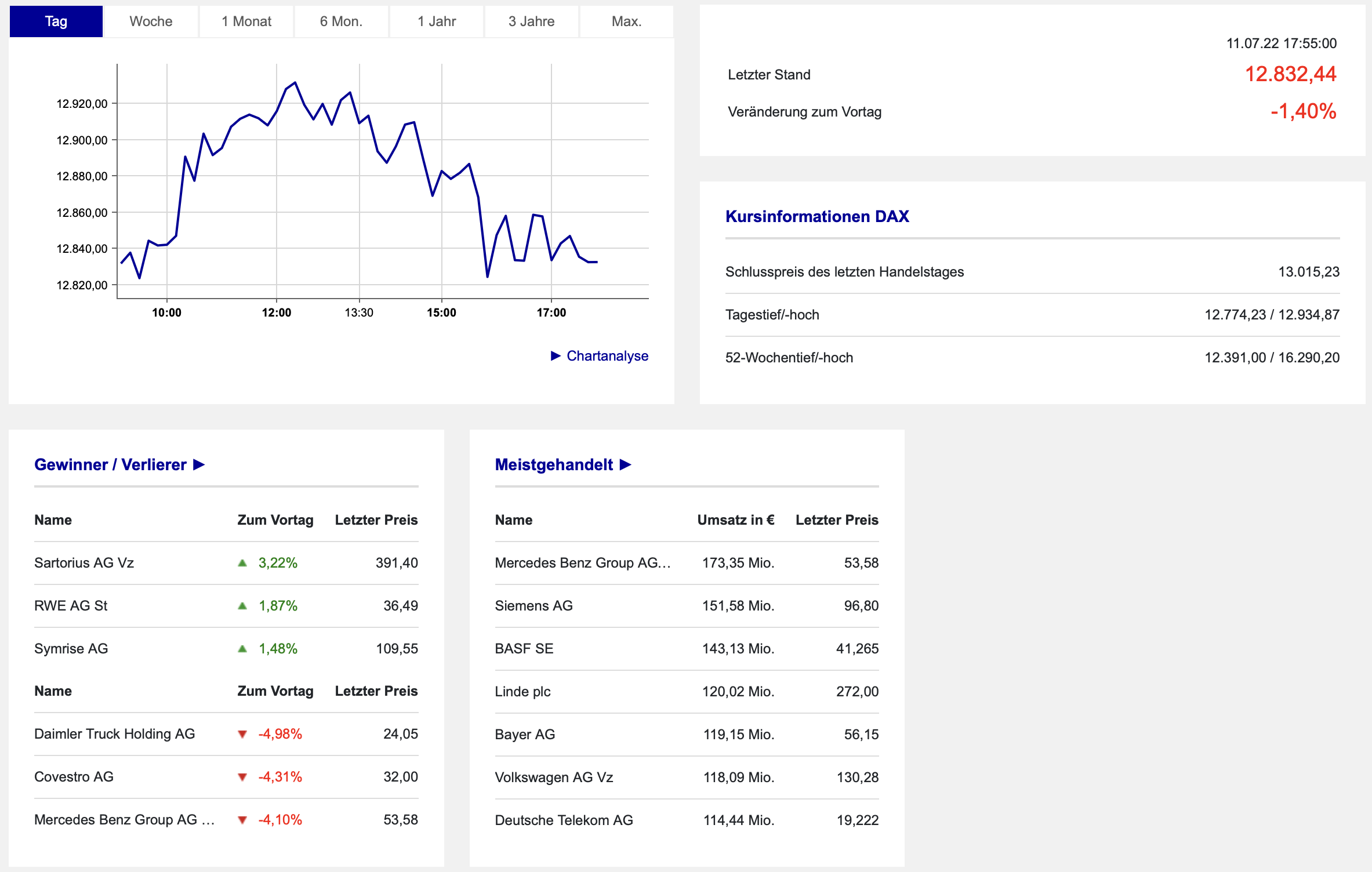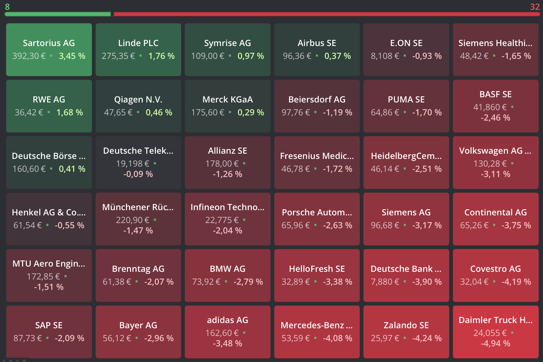 Das Minus im DAX blieb somit zum Handelsende bestehen. Diesmal zogen die Autowerte den Index nach unten, wie der Blick auf die Börse Frankfurt zeigt: