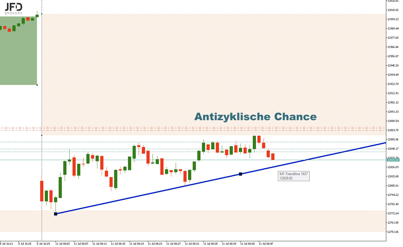 Die Korrektur zu dieser gezeigten Trendlinie war damit zum Start direkt erfolgt und lockte erst einmal neue Käufer an. Sie drangen in das Gap am Morgen ein und verkleinerten es.