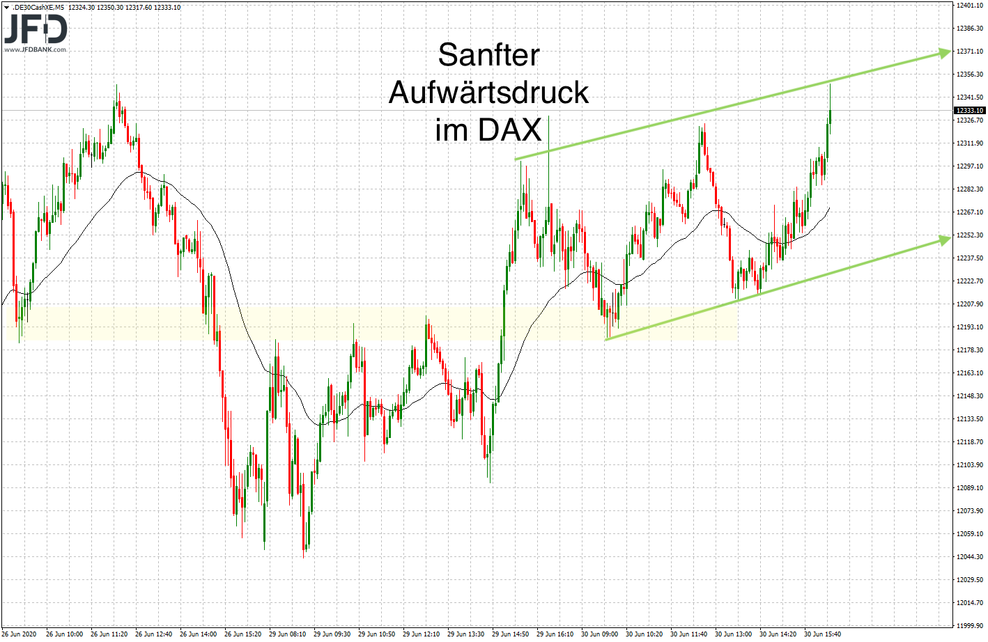 Im Gesamtbild ist dies als sanfte Aufwärtsbewegung zu skizzieren, die ihren Boden im Umfeld der Montags-Konsolidierungen fand: