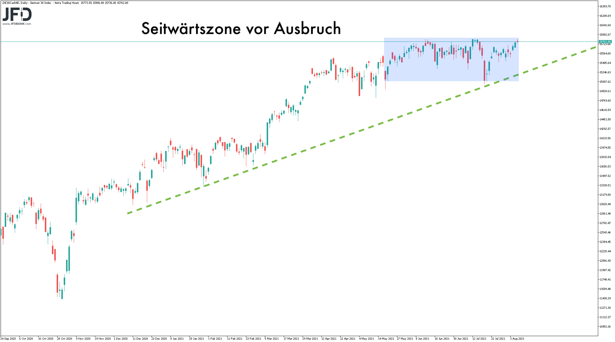 Die JFD Bank bietet ausschließlich beratungsfreie Dienstleistungen an. Der Inhalt dieser Analyse enthält keine Anlageberatung bzw. Anlageempfehlung (und darf auch nicht als solche verstanden werden) und stellt keinesfalls eine Aufforderung zum Erwerb von jeglichen Finanzinstrumenten oder -produkten dar. Die JFD Bank haftet nicht für Schäden, welche auf einzelne Kommentare und Aussagen auf Analysen von der JFD Bank zurückzuführen wären / sind und übernimmt keine Gewähr in Bezug auf Vollständigkeit und Richtigkeit des dargestellten Inhaltes. Somit trägt der Anleger ausschließlich alleinverantwortlich das Risiko für seine Anlageentscheidungen.