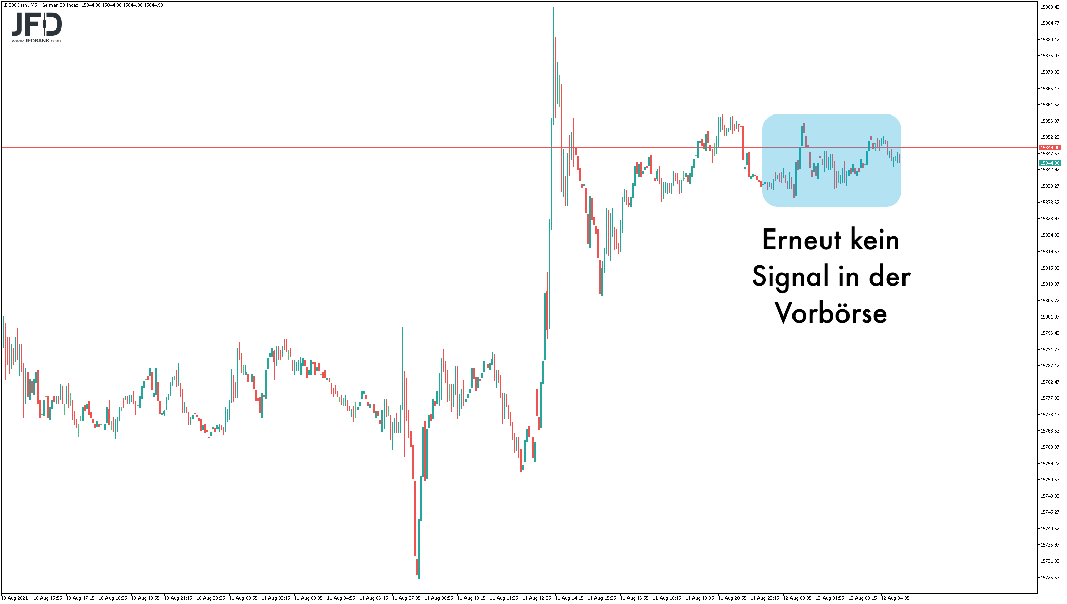 Ist der Pullback nachhaltig gewesen, sollte der Markt schnell über 15.860 kommen und dann neue Hochs anvisieren. Aus der Vorbörse heraus lässt sich dieser Trigger noch etwas verfeinern und als Box skizzieren: