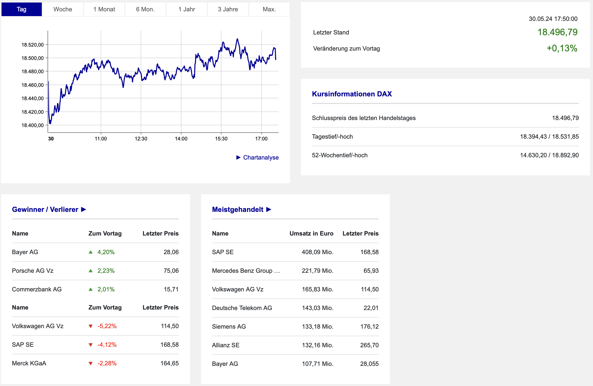 Anhand der Daten der Börse Frankfurt ist ein leichtes Plus verzeichnet. Der Handelstag vollzog eine deutlich abgeschwächte Intraday-Volatilität von der Bandbreite her im Vergleich zur Wochenmitte: