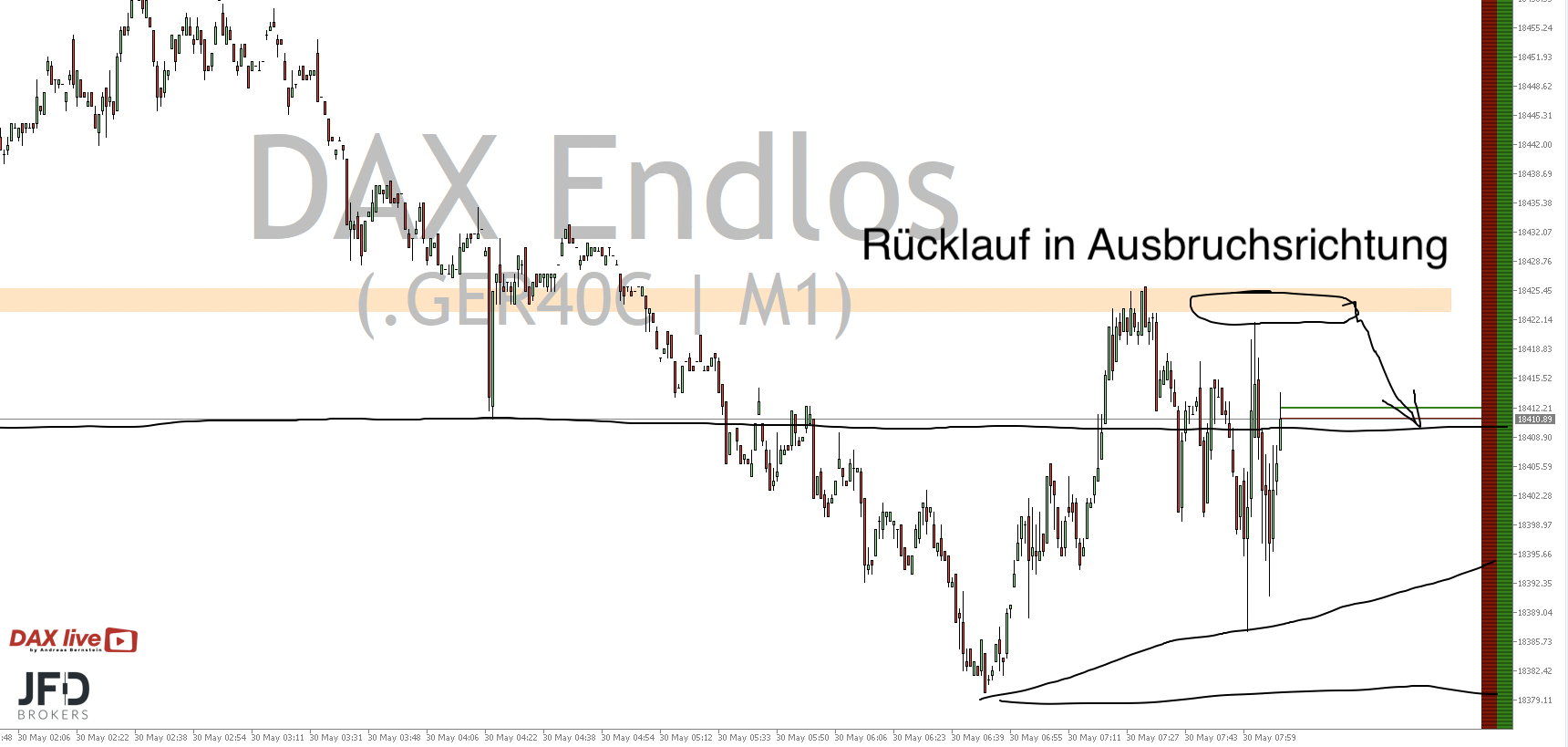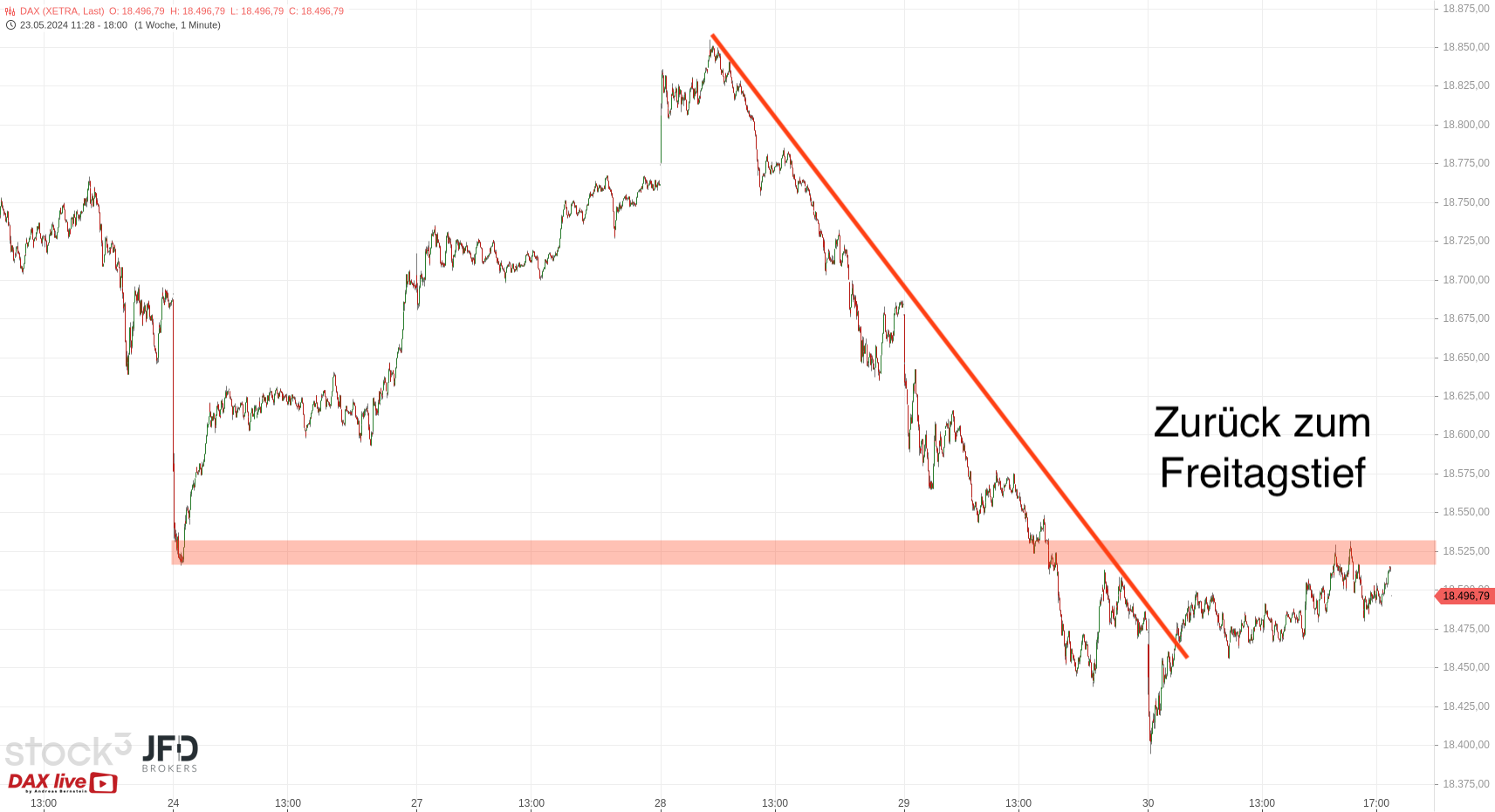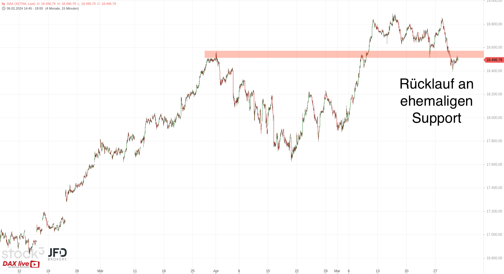 Übergeordnet sind wir damit vielleicht mit einem weiteren Aufschlag direkt in die Widerstandszone hinein bis 18.650 Punkte gestartet: