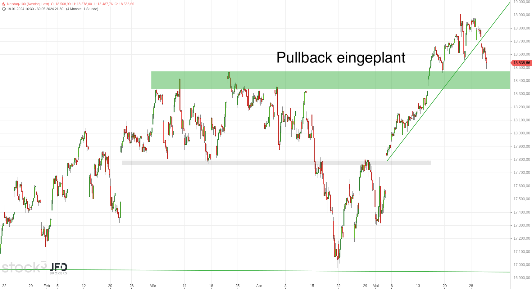 JFD Brokers bietet ausschließlich beratungsfreie Dienstleistungen an. Der Inhalt dieser Analyse enthält keine Anlageberatung bzw. Anlageempfehlung (und darf auch nicht als solche verstanden werden) und stellt keinesfalls eine Aufforderung zum Erwerb von jeglichen Finanzinstrumenten oder -produkten dar. JFD Brokers haftet nicht für Schäden, welche auf einzelne Kommentare und Aussagen auf Analysen von der JFD Brokers zurückzuführen wären / sind und übernimmt keine Gewähr in Bezug auf Vollständigkeit und Richtigkeit des dargestellten Inhaltes. Somit trägt der Anleger ausschließlich alleinverantwortlich das Risiko für seine Anlageentscheidungen.