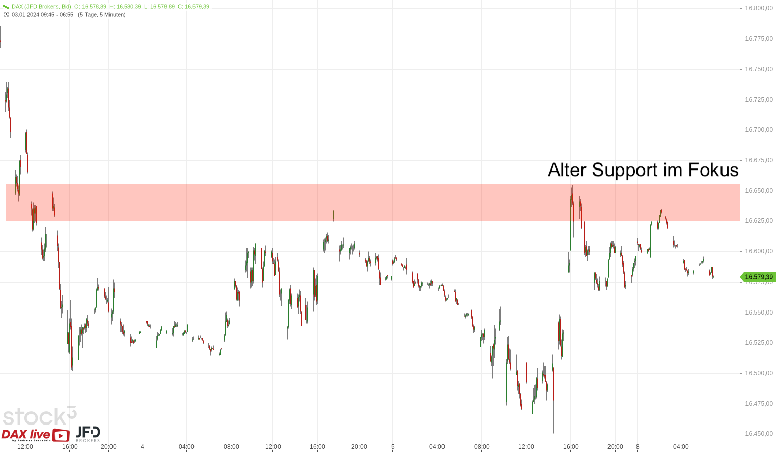 Mit dem Schlusskurs an der Börse Frankfurt hat sich die 16.600 per Schlusskurs fast wieder gezeigt. Als Ankerpunkt hatten wir diese bereits am Donnerstag gesehen: