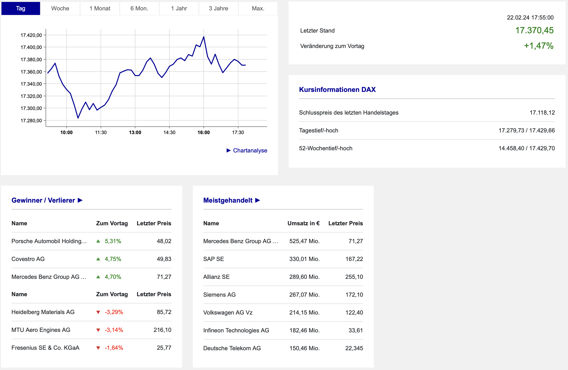 Somit entstand ein sehr positives Gesamtbild mit weiteren Allzeithochs am frühen Nachmittag, wie die Daten der Börse Frankfurt deutlich aufzeigen: