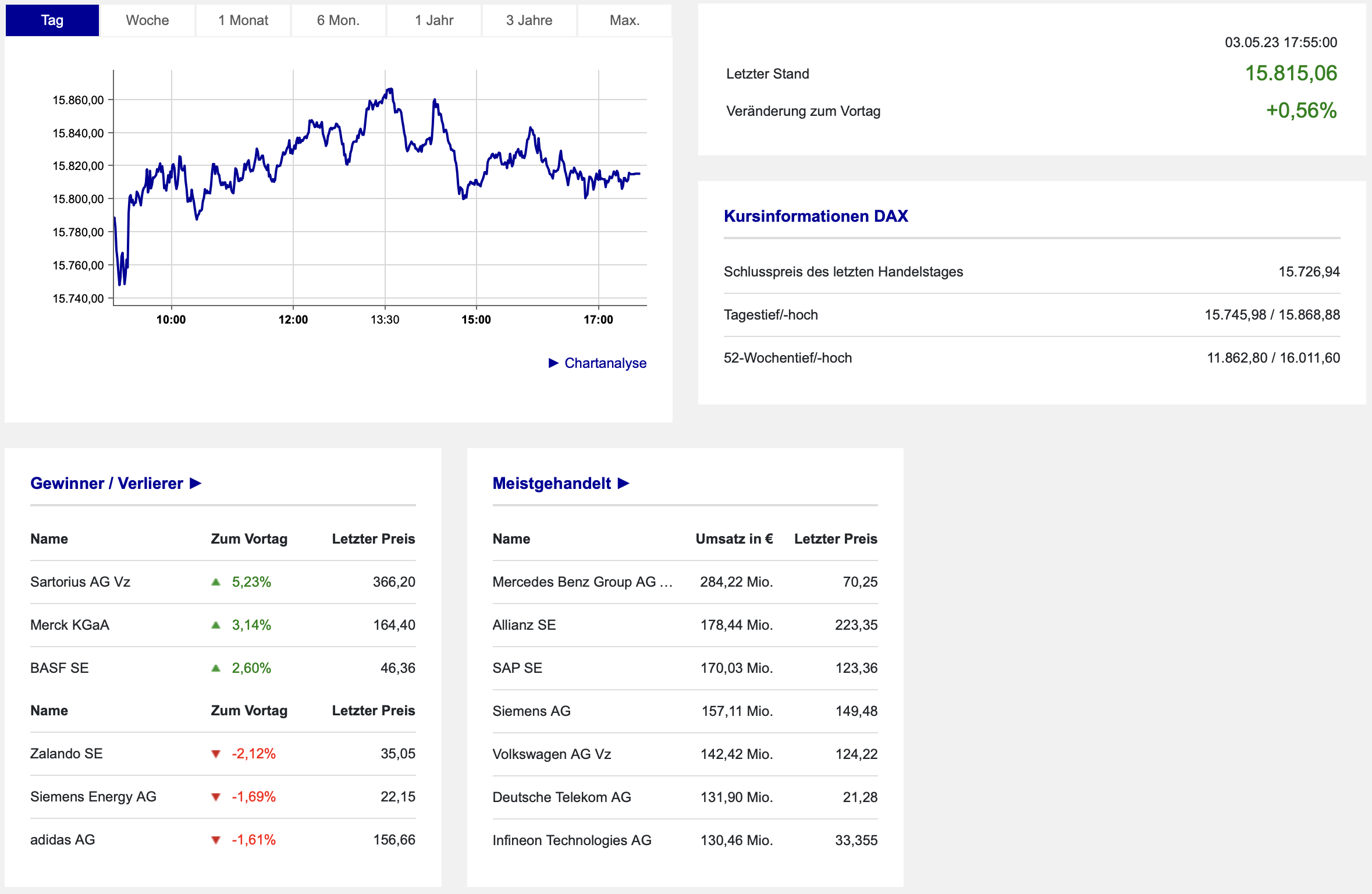 Die Daten der Börse Frankfurt sind hier noch einmal wegen einem potenziellen GAP am Donnerstag aufgezeigt: