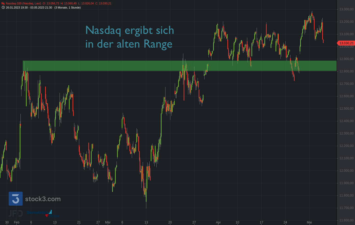 Damit haben wir im Nasdaq auch wieder die alte Range zur Hälfte durchlaufen: