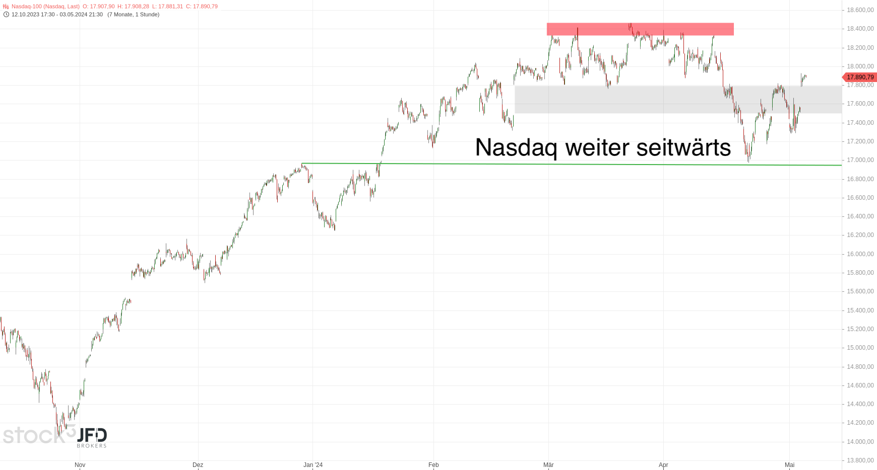 JFD Brokers bietet ausschließlich beratungsfreie Dienstleistungen an. Der Inhalt dieser Analyse enthält keine Anlageberatung bzw. Anlageempfehlung (und darf auch nicht als solche verstanden werden) und stellt keinesfalls eine Aufforderung zum Erwerb von jeglichen Finanzinstrumenten oder -produkten dar. JFD Brokers haftet nicht für Schäden, welche auf einzelne Kommentare und Aussagen auf Analysen von der JFD Brokers zurückzuführen wären / sind und übernimmt keine Gewähr in Bezug auf Vollständigkeit und Richtigkeit des dargestellten Inhaltes. Somit trägt der Anleger ausschließlich alleinverantwortlich das Risiko für seine Anlageentscheidungen.