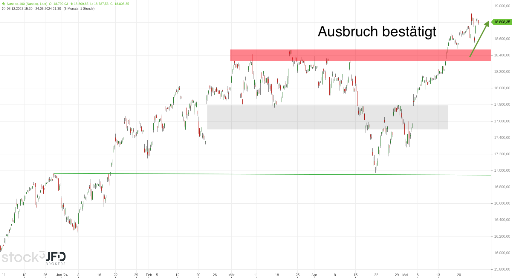 JFD Brokers bietet ausschließlich beratungsfreie Dienstleistungen an. Der Inhalt dieser Analyse enthält keine Anlageberatung bzw. Anlageempfehlung (und darf auch nicht als solche verstanden werden) und stellt keinesfalls eine Aufforderung zum Erwerb von jeglichen Finanzinstrumenten oder -produkten dar. JFD Brokers haftet nicht für Schäden, welche auf einzelne Kommentare und Aussagen auf Analysen von der JFD Brokers zurückzuführen wären / sind und übernimmt keine Gewähr in Bezug auf Vollständigkeit und Richtigkeit des dargestellten Inhaltes. Somit trägt der Anleger ausschließlich alleinverantwortlich das Risiko für seine Anlageentscheidungen.
