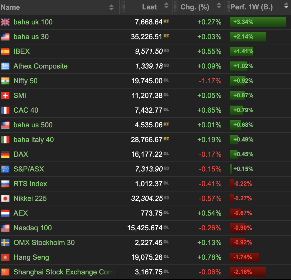 Wie ordnet sich dieses Bild im Wochenvergleich zu den anderen Indizes ein?