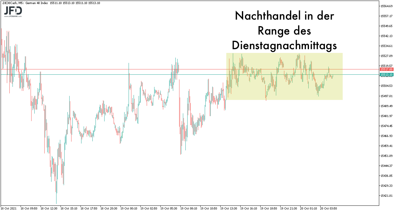 Im Handelsverlauf stand die 15.470 wieder im Fokus und natürlich die runde Marke um 15.500. Auf beide Schwellen sind wir mehrfach eingegangen. Während der Bereich unter 15.470 immer wieder die Käufer anzog, war über 15.500 keine Euphorie erkennbar. Auch nicht am Nachmittag, als die US-Börsen erneut in Richtung der Allzeithochs tendierten.