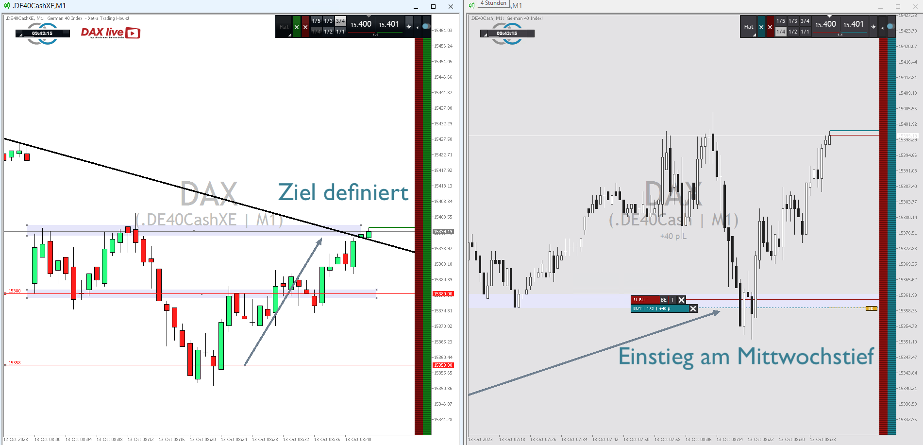 Dabei ging ich auf den Handelsbereich aus der Wochenendanalyse am 05.10.2023 ein, da wir nach dieser Woche erneut an ihn herangelaufen sind: