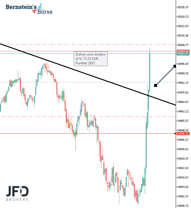 Im Dow Jones kam mir das Momentum zum Handelsstart entgegen, was ich wie folgt handelte: