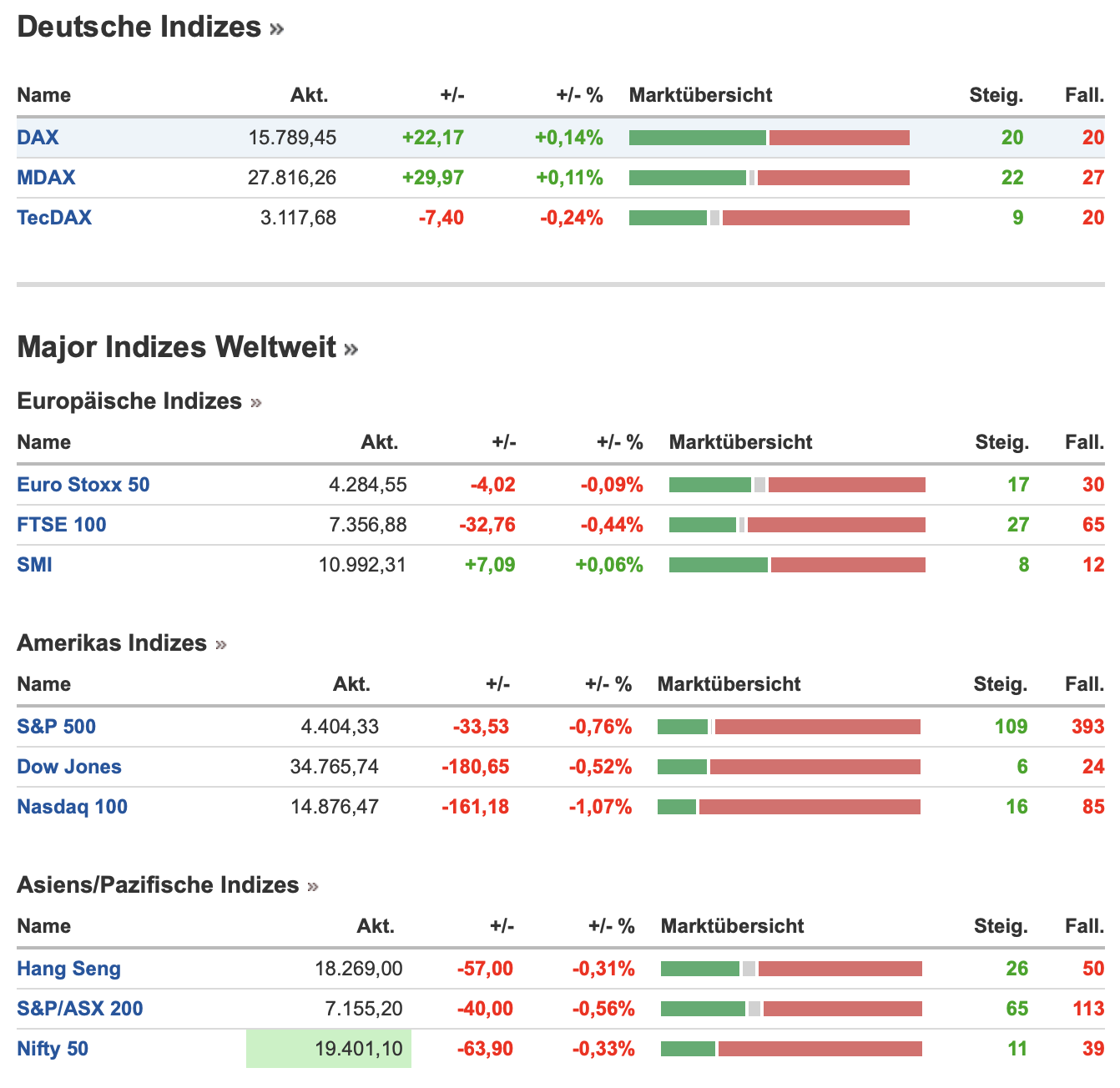 Die Schlusskurs zogen sich dann auch rot in Richtung Asien weiter, wie hier in der Übersicht zu sehen ist:
